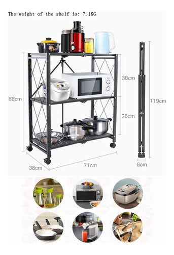 Organizador Repisa Metálica 3 Niveles Plegable Con Ruedas