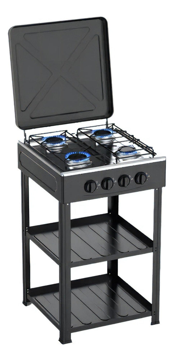 Cocina Encimera A Gas 4 Quemadores Con Repisas Color Negro