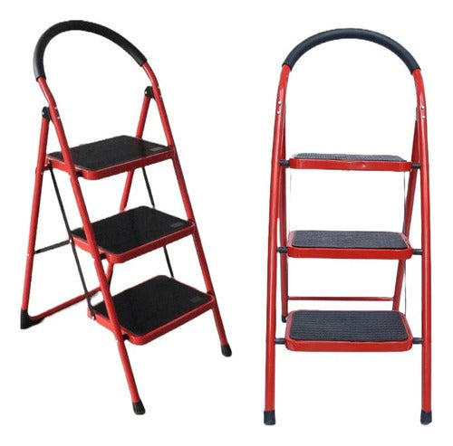 Piso Escala Plegable / Escalera Plegable 3 Peldaños Roja